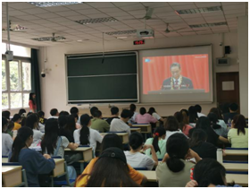 在新冠病毒肆虐的艰难时刻,钟南山院士、无数医务人员、全国各地党员干部纷纷直面病毒、主动请战、一线战疫……中华儿女多奇志,万众一心筑长城,中国人民齐心协力谱写了一曲曲壮烈动人的英雄凯歌。为深刻感受中国人民的力量,响应学校号召,9月16日下午,2019级同学们在辅导员郑媛媛老师和各班团支书的组织下,于德济楼103教室,集体观看了《一切为了人民—全国抗击新冠肺炎疫情表彰大会》实况 。